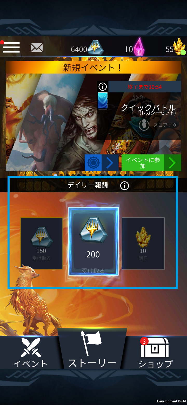 ゲームにログインすると、本日の報酬がホーム画面に表示されます。