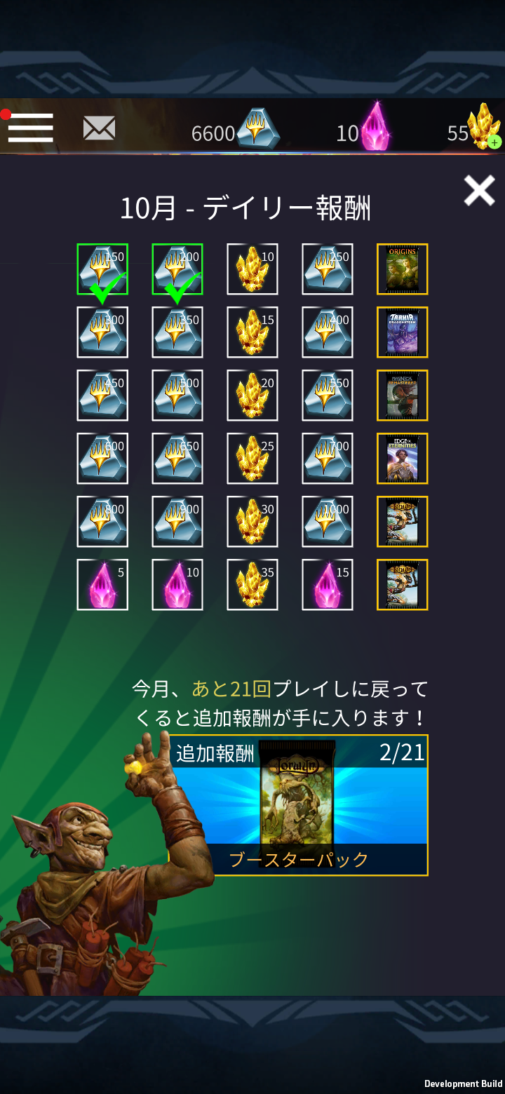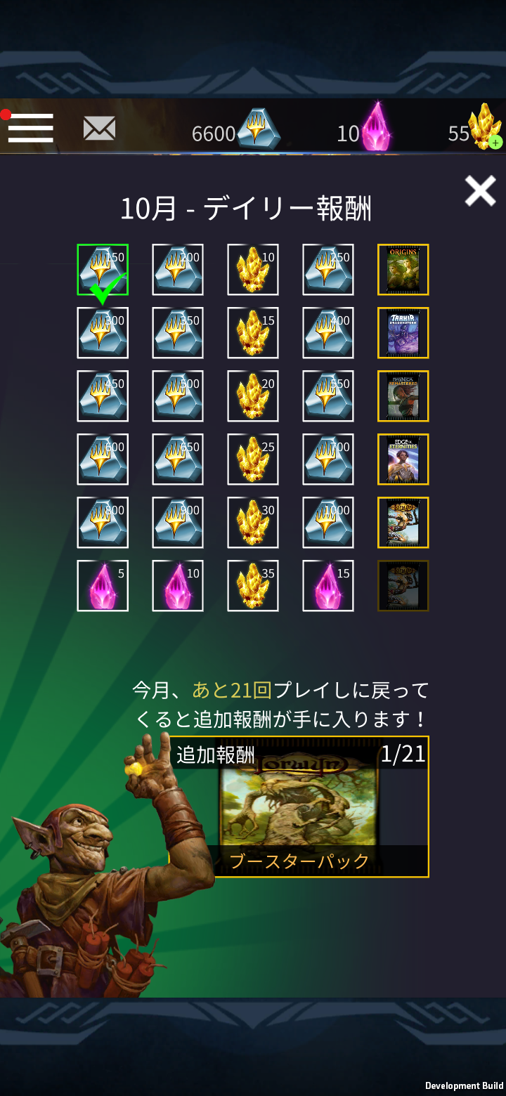 その月の21日目の報酬である場合、別のポップアップが表示され、ボーナス報酬を獲得したことが通知されます。