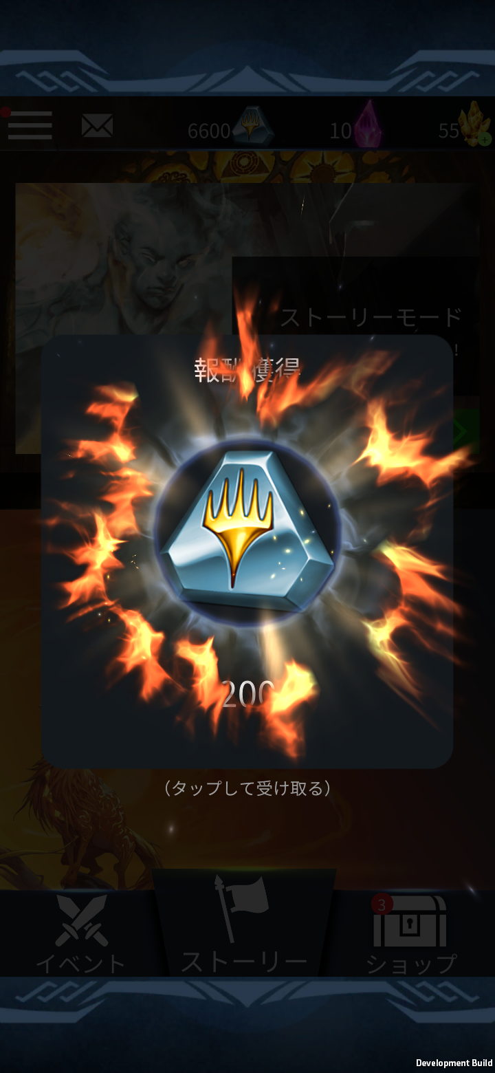 「受け取る」をクリックすると、報酬の内容が表示されるポップアップが現れます。ゲーム内通貨の場合はアカウントに直接追加されます。ブースターパックの場合はショップに追加され、後で受け取ることができます。